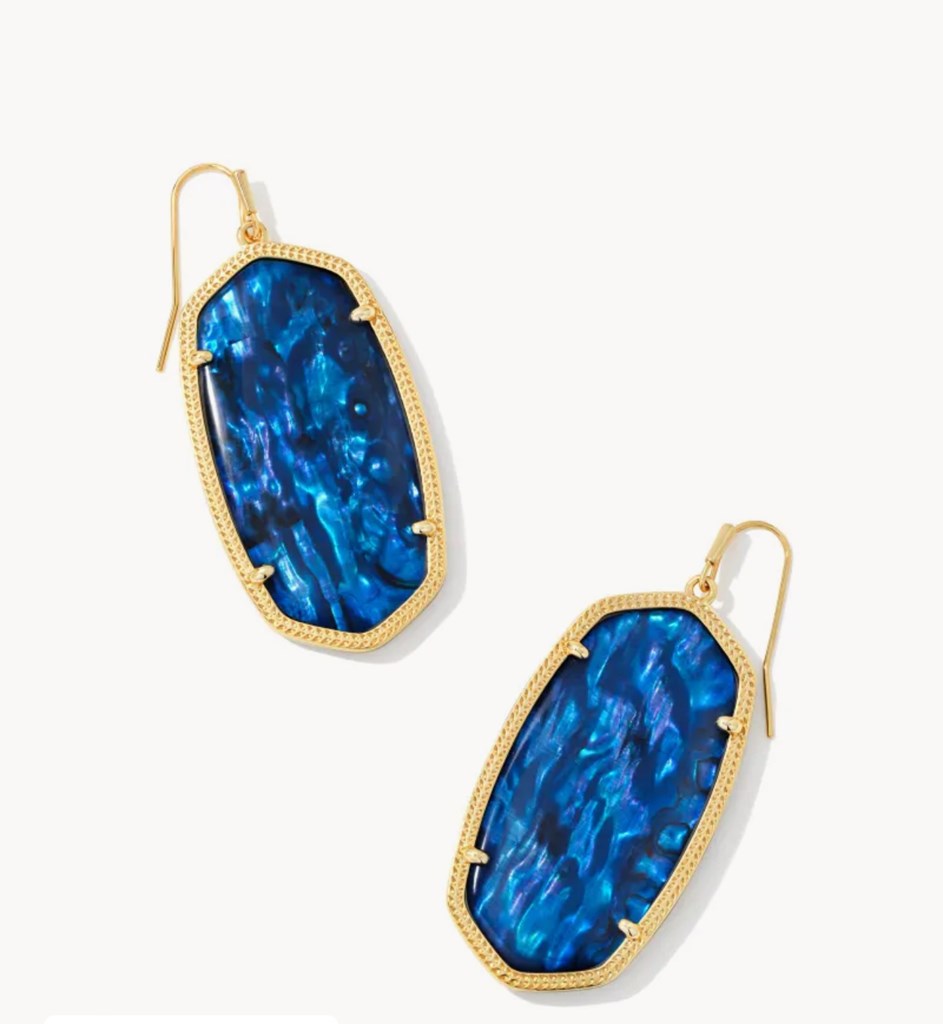 A gift for him and her or just her. Beautiful Danielle Gold Statement earrings in Navy Albalone. 14K Yellow gold. 2.24”L x 1”W; Orleans Kitchen ($50) and Outback Steakhouse ($10) gift cards.